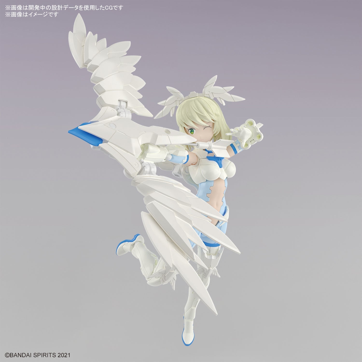 Elliene Eri-Erika (Elegant Form) is the newest member of Bandai's "30MS" (30 Minutes Sisters) figure-kit lineup! This all-in-one kit includes the figure, three interchangeable faces with tampo printing, and armor parts. Assembly is smooth, with the runner parts arranged in an optimal manner with ease of assembly and work flow in mind. Her three faces include a normal expression, a smile, and an aiming face with one eye closed. Her wings can move on multiple axes, giving her tons of expressiveness! The wings can also be transformed into a large bowgun by rearranging the wings on her back; the shaft of the arrow is made of metal. Newly designed hairstyle parts are included too, and the included base allows her to be displayed floating. She can also use other "30MS" parts, so you can create your own custom figure! Order her for your own collection today!