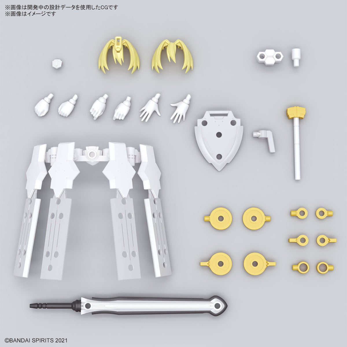 Bandai's "30MS (30 Minutes Sisters)" lineup gets a new sister -- say hello to Yuphia! This set includes parts to build her body, three interchangeable faces with tampo printing (a normal expression, a smile, and a screaming face), and armor parts. Teeth parts are included, and can be installed if you like! Her waist armor is movable on multiple axes, and has a new structure that allows her to be displayed in a natural kneeling pose. Her shield and hammer can be attached to her back; her hairstyle has a delicate design that highlights her individuality. As with all 30MS figures, you can use any face parts, hairstyles, and body parts from other figures in the line to customize her as you like, thanks to the common 3mm joints used throughout the series. Order her for your own collection today!