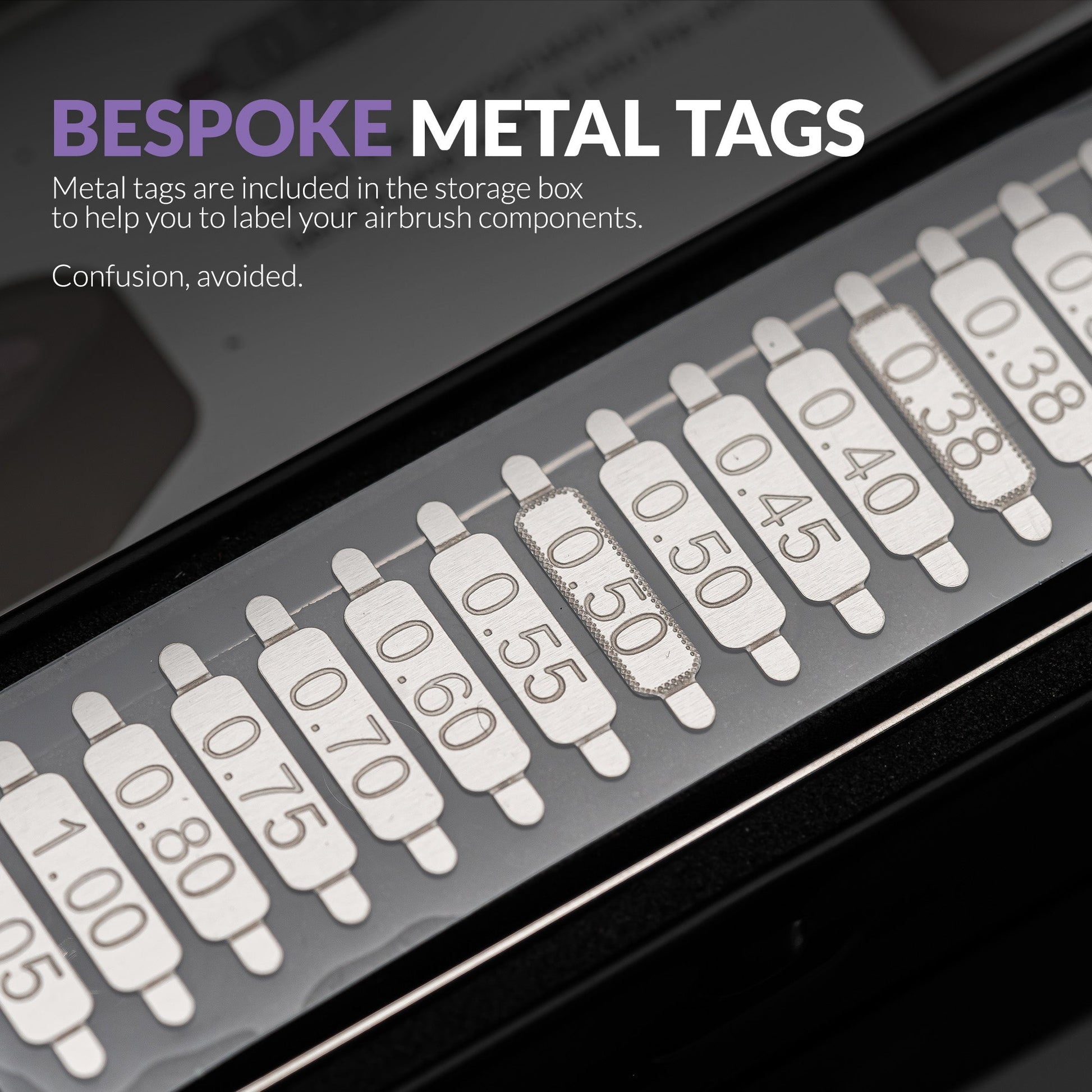 Bespoke Metal Tags: Included metal tags let you label and organize your airbrush parts for easy identification. Say goodbye to confusion and keep your workspace clutter-free.